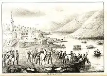 Los batallones entraron a mediodía en la ciudad pero apenas habían ocupado los soldados sus aposentos cuando comenzaron a redoblar con furia los tambores. Lanzándose a la calle los carlistas, creyendo que se anunciaba el reparto de la comida, enseguida oyeron muy cerca el tronar de la artillería de los perseguidores isabelinos.