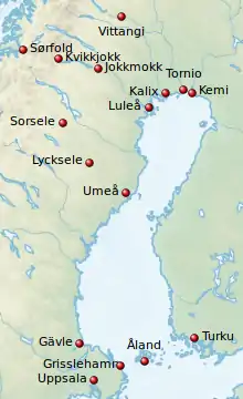 Luego Linnaeus continuó su viaje a lo largo de la costa hacia Tornio (Torneå en sueco), desde donde realizó su última incursión tierra adentro, siguiendo el curso del río Torne hasta Vittangi. Pasó algún tiempo en la zona de Tornio; en Kalix se informa sobre técnicas de ensayos de metales. A mediados de septiembre comienza su viaje de regreso. Viaja vía Kemi, viaja a lo largo de la costa finlandesa hacia Turku (Åbo en sueco), desde donde navega pasando por las islas Åland, llegando a Suecia en Grisslehamn y finalmente a su hogar en Uppsala.[12]