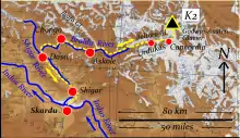 - Mahdi (también transliterado Mehdi} procedía de Hassanabad.[31] Los hunza realizaban el trabajo equivalente al de los sherpas nepalíes.