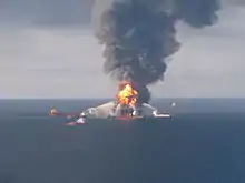 La explosión de la plataforma de perforación Deepwater Horizon fue la explosión del 20 de abril de 2010 y el incendio posterior en la Unidad de Perforación Marítima Móvil (MODU) semisumergible Deepwater Horizon, que era propiedad de Transocean y estaba operada por Transocean y que perforaba para BP en el campo petrolero Macondo Prospect aproximadamente a 64 km al sureste de la costa de Luisiana. La explosión y el incendio posterior resultaron en el hundimiento de Deepwater Horizon y la muerte de 11 trabajadores y otros 17 resultaron heridos. El mismo reventón que causó la explosión también provocó un incendio en el pozo de petróleo y un derrame masivo de petróleo en alta mar en el Golfo de México, considerado el mayor derrame accidental de petróleo marino en el mundo y el mayor desastre ambiental en la historia de Estados Unidos.[2][3][4]