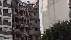 ![]() Imagen del edificio donde ocurrió la explosión en Rosario antes de ser demolido. | ||