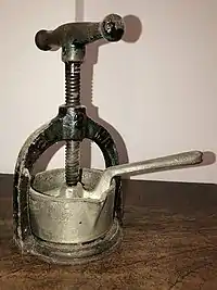 Este tipo de herramienta suele tener diferentes aspectos, una de las más conocidas en las cocinas de todo el mundo tiene una forma ovalada (similar a un huevo) con rugosidades u ondulaciones sobre la que se suele poner una fruta cortada por la mitad, y sobre la que se presiona para extraer la pulpa. Esta forma oval se encuentra fija a una especie de plato, encargado de recoger la pulpa sobrante. Algunos de estos modelos suelen ofrecer variantes con recogedor de pepitas.[cita requerida]