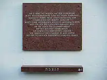 La inscripción, en letra gótica, de difícil lectura y colocada a una cierta altura, pasó desapercibida durante mucho tiempo. Fue solo en el curso de las discusiones sobre la erección del monumento en la Judenplatz que hubo consideraciones sobre qué hacer con la placa, pero se decidió dejarla en su lugar como un monumento también.