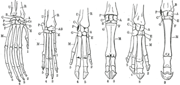 Los dígitos pueden estar especializados para diferentes formas de locomoción. Un ejemplo clásico es el desarrollo del caballo de un solo dedo (monodactilia).[3] Otros cascos, como los de artiodáctilos y perisodáctilos, e incluso la pezuña-como pie de extintos hadrosaurs,[9] pueden ser considerados como especializaciones similares.