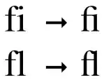 En la tipografía germánica y anglosajona, en particular de las fuentes tipo serif, la f minúscula es una de las letras ligadas más comúnmente. Unicode crea ligaduras con las letras f, l, i y t: ff, fi, fl, ffi, ffl y ſt (de U+fb00 hasta U+fb05).