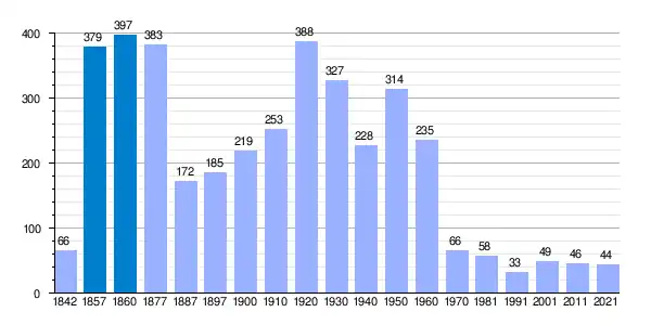 Gráfica de evolución demográfica de Fígols[2] entre 1842 y 2021
