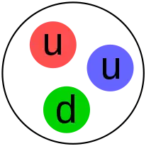 Los físicos de partículas denominan como hadrones a las partículas que se componen de otras más elementales. Los hadrones están compuestos de quarks, antiquarks y de gluones. La carga eléctrica de los hadrones es un número entero, por lo que la suma de la carga de los quarks que los componen debe ser un entero.[12]