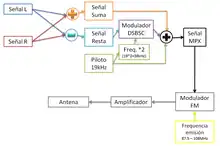Es decir, para emitir radio en estéreo no emitimos directamente los dos canales L y R, sino que emitimos dos señales resultantes de combinar las señales L y R: las señales Suma y Resta.