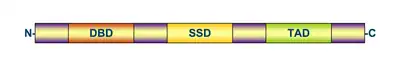 - Un dominio de detección de señal (SSD) opcional (ej. un dominio de unión de ligando), el cual detecta señales externas y, como respuesta, transmite estas señales al resto del complejo de la transcripción, resultando en la regulación positiva o negativa de la expresión genética. También, el DBD y SSD pueden residir en proteínas diferentes que se asocian en el complejo de la transcripción para regular la expresión genética.