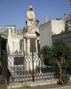 En 1877 fue construido cerca del pórtico de la entrada del Cementerio un pequeño monumento de mármol blanco representado a una dolorosa con una placa que lleva la siguiente inscripción: