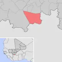 Se encuentra ubicada al sur del país, junto a la frontera con Burkina Faso y Costa de Marfil y al sureste de la capital nacional, Bamako.