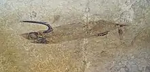 ![]() Recreación de una hembra (arriba) y un macho (abajo) de Falcatus falcatus | ||
