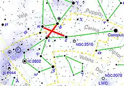 La Falsa Cruz es un asterismo visible en el hemisferio austral que se encuentra entre las constelaciones de Vela y Carina, ambas parte de la antigua Argo Navis.