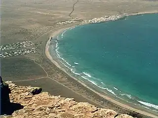 ![]() Vista del Risco de Famara desde la Caleta. | ||