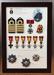 Al finalizar su trayectoria fue nombrado como caballero de la orden de Malta, cruz y placa de la Orden de San Hermenegildo y condecorado con doce medallas, de las cuales seis fueron otorgadas al mérito naval y militar por acciones de guerra, entre ellas se le concedieron la medalla por la guerra de Independencia cubana, medalla del sitio de Cádiz y medalla de Alfonso XIII, entre otras.