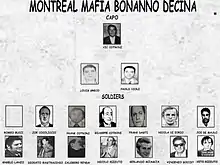 Familia criminal Cotroni Familia criminal Colombo Familia criminal Gambino Familia criminal Genovese Familia criminal Lucchese Familia criminal de San José Familia criminal de Milwaukee Familia criminal Rizzuto Castellammarese clan | |