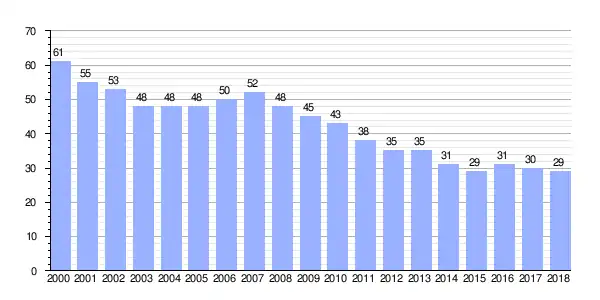 | Gráfica de evolución demográfica de Fampousa entre 2000 y 2018 |