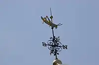La veleta de grillo dorada en la parte superior del edificio fue creada por el Diácono Shem Drowne en 1742. Bañada en oro, la veleta de cobre pesa 80 libras y mide cuatro pies.[6] Se cree que la veleta está modelada sobre la base de la veleta del London Royal Exchange, basada en el escudo familiar de Thomas Gresham.[7][8]