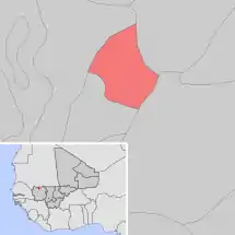 Se encuentra ubicada al oeste del país y al norte de la región de Kayes, en la zona climática del Sahel, cerca de la frontera con Mauritania y la región de Kulikoró.