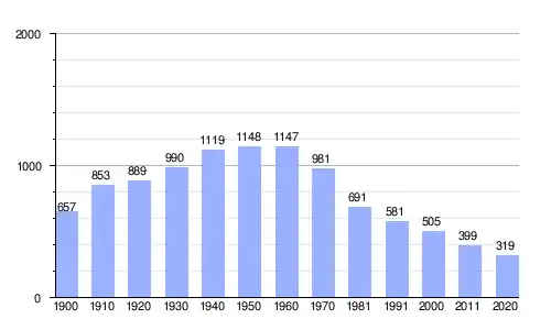 | Gráfica de evolución demográfica de Faramontanos de Tábara entre 1900 y 2020 |