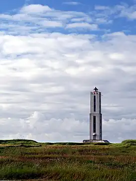 El espacio con dos etapas de una torre faro, fue construido en 1938-1939 y fue el primer faro de Islandia fabricado de hormigón armado. La estructura fue diseñada por Axel Sveinsson, e influenciado por las ideas de Guðjón Samuelsson, el arquitecto estatal de Islandia.