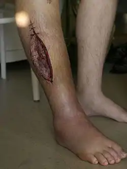 - Esta obra contiene una traducción derivada de «Fasciotomy» de Wikipedia en inglés, concretamente de esta versión, publicada por sus editores bajo la Licencia de documentación libre de GNU y la Licencia Creative Commons Atribución-CompartirIgual 4.0 Internacional.