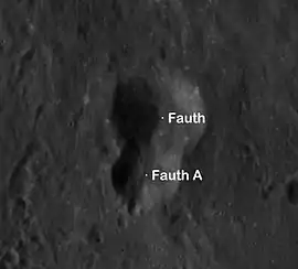 ![]() Localización de Fauth. Fotografía de la misión Lunar Reconnaissance Orbiter |