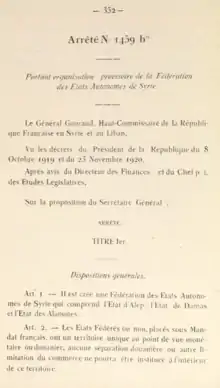 | Estado federal administrado por el mandato francés de Siria | ||||||||||||||||||||||||||||||||||||||