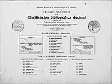 1909 Escribe Cuadros sinópticos de la clasificación decimal universal, Ministerio de Obras Públicas, 8 p.[18]