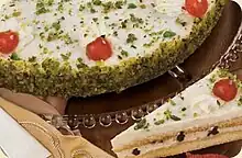 La fedora es una tarta tradicional siciliana hecha a base de requesón (ricotta) azucarado, bizcocho (pan di Spagna), virutas de chocolate y decorada con pistacho y almendra.