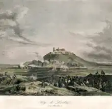 Marcharía a unirse junto a las otras tropas el 13 de enero del 1809, pero el 24 de ese mismo mes es desalojado por los franceses de sus posiciones en Leciñena, debido en parte a la inexperiencia de sus tropas y su mal equipo,[1]tras lo cual avanzó por la Noguera hasta Sariñena donde se reunió con el Marqués de Lazán, Luis de Rebolledo con quien emprendió la marcha hacia Fraga pero que abandonó para ir a defender la plaza de Monzón una vez recibió la noticia de la caída de Zaragoza.