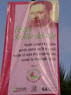 Felipe Sevilla del Río was a Mexican writer, historian and poet from the state of Colima. He was born on February 12, 1910, the son of José Refugio Sevilla Padilla and Mercedes del Río Fuentes. During his childhood he had contact with nature, so from a young age he began to write his first verses such as La Satiresa, El Pastor y El Fauno and his poems dedicated to the state of Colima, La Feria, La Ciudad de la Palmas, La Ola Verde and Cuyutlan. He translated documents and in order to publish his book Brief study on the conquest and founding of Colima, thanks to which he marked his appointment as life president of the Colima History Society. In 1962, on the occasion of the death of his mother and wife in less than a month, he dedicated his studies to historical research. In 1974, he published Literary and Historical Prosas, which was a compilation of more than forty writings, stories and anecdotes that narrated religion, customs and politics of Colima during the 16th to 19th centuries. He died on November 28, 1982, in his honor one of the rooms of the Historical Archive of the University of Colima and an important avenue are named after him.