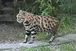 El gato patinegro, gato de pies negros o gato de patas negras (Felis nigripes) es una especie felino salvaje, de aspecto fornido y pelaje manchado. Su nombre proviene del color de las plantas de sus patas, que están cubiertas de pelos negros que lo protegen del calor del desierto.[2][3] Con un peso que oscila entre los 1,5 y 2,75 kg,[4] es uno de los felinos más pequeños del mundo y el más pequeño de África.[5]