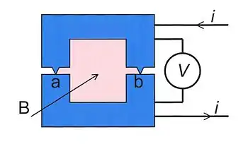 siendo B el campo magnético aplicado perpendicularmente a la superficie y A el área de la superficie en el bucle. La supercorriente total viene dada por
