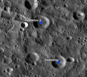 ![]() Localización de Feoktistov. Fotografía de la misión Lunar Reconnaissance Orbiter |