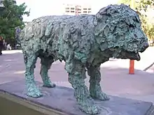 Escultura del perro Fernando en la vereda de la Casa de Gobierno.