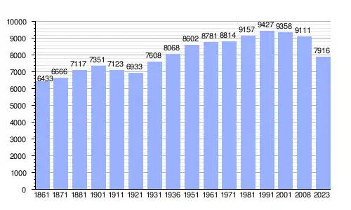 | Gráfica de evolución demográfica de Ferrandina entre 1861 y 2023 |