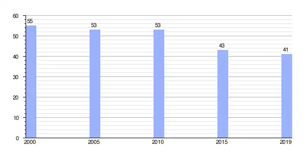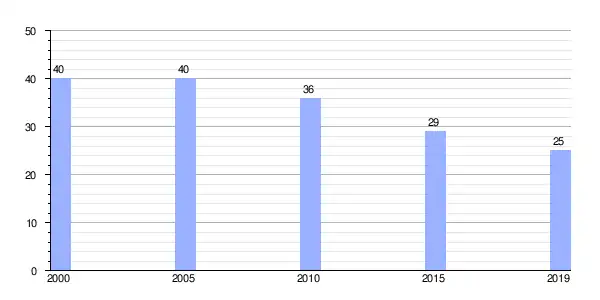 | Gráfica de evolución demográfica de Ferreiros (parroquia) entre 2000 y 2019 |