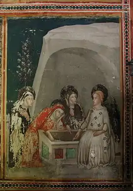 Se ha atribuido esta influencia de la escuela sienesa sobre Ferrer Bassa a un viaje realizado para entrar en contacto con la pintura del Trecento italiana; un viaje que se habría producido entre 1333 y 1339, unas fechas en las que no se tienen otras noticias suyas ni ningún encargo conocido. Podría haber sido en Siena donde habría contactado con la obra de los hermanos Lorenzetti, en Aviñón, donde residió Simone Martini mientras pintaba el Retablo Orsini del que emula la escena del descendimiento en la pintura de la celda de San Miguel, y probablemente también en Orvieto, cerca de Siena, Asís y Arezzo.[7]