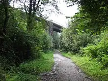 ![]() Paso por debajo del viaducto de Par y de la Línea Principal de Cornualles, cerca de la entrada al puerto de Par | ||