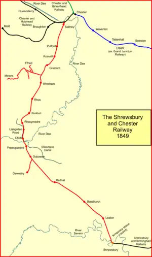 El Ferrocarril de Shrewsbury y Chester (nombre original en inglés:The Shrewsbury and Chester Railway) tuvo su origen en el Ferrocarril Minero de Gales del Norte (el "North Wales Mineral Railway"), construido para transportar carbón y mineral de hierro desde los yacimientos situados alrededor de Wrexham hasta los muelles del río Dee. El tendido original se prolongó hasta Shrewsbury y acabó formando parte de una línea principal. Se abrió en 1846 desde Chester hasta Ruabon, y en 1848 de Ruabon a Shrewsbury, para fusionarse finalmente con el Great Western Railway en 1854.
