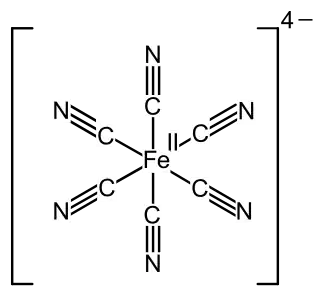 . En solución acuosa este complejo de coordinación resulta relativamente poco reactivo. Por lo general se encuentra disponible en forma de sal ferrocianuro de potasio, la cual tiene la fórmula K