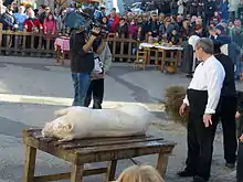 ![]() El cerdo se escalda para poder retirar la piel | ||