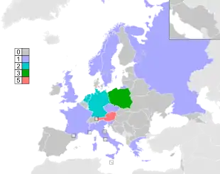 | 5 | Piano | 1982, 1986, 1990, 2000, 2018 | Alemania, Francia, Países Bajos, Polonia, Rusia |