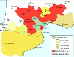 La plasmación del nuevo sistema feudal se manifestó en la subordinación del linaje occitano a su señor natural, el conde de Barcelona. Pero una serie de acontecimientos, sobre todo los enfrentamientos de los condes de Tolosa y sus vasallos Trencavell con la Casa de Barcelona, cambiaron pronto la situación. A finales del siglo XI se interrumpió la política occitana de la Casa de Barcelona, con la pérdida del condado de Carcasona y del condado de Rasez.[3]