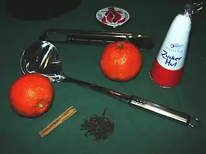 En una olla (generalmente de gran tamaño, o de tamaño proporcional al número de asistentes) se pone vino tinto seco con unos clavos de olor y unas ramas de canela, unas rodajas de limones o naranjas. En algunas recetas se incluye zumo de naranja.