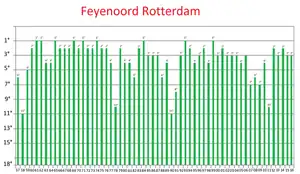 | Eredivisie (11/16) | 1960-61, 1961-62, 1964-65, 1968-69, 1970-71, 1973-74, 1983-84, 1992-93, 1998-99, 2016-17, 2022-23.[8] | 1959-60, 1965-66, 1966-67, 1967-68, 1969-70, 1971-72, 1972-73, 1974-75, 1975-76, 1978-79, 1982-83, 1993-94, 1996-97, 2000-01, 2011-12, 2013-14. |