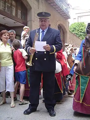 En éste preciso momento, empieza el Pregón de la Fiesta (pregó de la festa) por las calles y plazas de la ciudad. Los gigantes y otros elementos del folclore de la Fiesta Mayor acompañan, juntamente con la banda de músicos, al Pregonero Municipal a realizar el pregón por los diferentes sitios del casco antiguo realizando un tradicional recorrido. Los Trabucadores realizan una Tronada justo en el momento en qué los gigantes empiezan a hacer el recorrido. El pregón se termina en la plaza de San Juan, donde tiene lugar una exhibición final de los gigantes de Solsona, bailando al ritmo de la música.