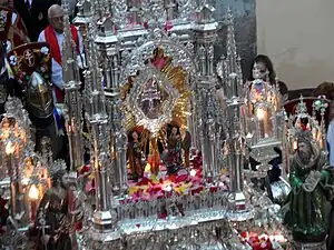 - En las tres procesiones de la Santísima Cruz, participa también la imagen de Santa Elena, precediendo siempre al carruaje-custodia de la Patrona.