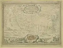 Casteldavide sitiada y rendida por el Rey N. S. D. Phelipe V en 25 de junio de 1704. Eques Philippus Pallotta, sacrae catholicae. Majestatis architectus... invenit Matriti 1705. Bibliothèque nationale de France, GED-3734.